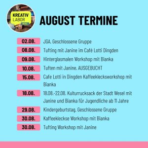 Aktuelles An dieser Stelle finden Sie Informationen über meine aktuellen Tätigkeiten oder Projekte. All those circles. In verschiedenen Techniken und Größen 02 Oktober 2025 Me and You – Lifecircles. 80x100cm Acryl auf Leinwand 02 Oktober 2025 Ein neues Hinterglasbild in abstrakter Malweise auf Holzrahmen. 20x20x5cm 15 September 2025 The Weseler. 10x10cm und 20x20xm als Hintermalglasbild auf Holzrahmen. Bekannte Weseler Gebäude inklusive 13 September 2025 Das nächste Wimmelbild. Eigenes Design. 60x60cm Marker auf Leinwand. 13 September 2025 Der nächste KaffeeKlecksKurs im Atelier am 30.08. um 11.00Uhr. Anmeldungen gerne unter Bianka.Bauhaus@gmail.com 14 August 2025 Noch Plätze frei im frisch aufgelegten KaffeeKlecksKurs am 05.08.25 07 Juli 2025 Einige Sidekicks zu den aktuellen Bildern. Hinterglasmalen, Mosaikboard und Batman in anderer Mission 07 Juli 2025 Unsere derzeitig bekannten Workshop-Termine in diesem Jahr. Buchungen gerne über www.kreativlabor-wesel.de Natürlich sind jederzeit individuelle Termine nach Absprache möglich 06 Juli 2025 Der aktuelle Zeitungsbericht über die Übergabe des Bildes von Ingeborg ten Haeff 06 Juli 2025 1 2 3 … 6 Weiter »