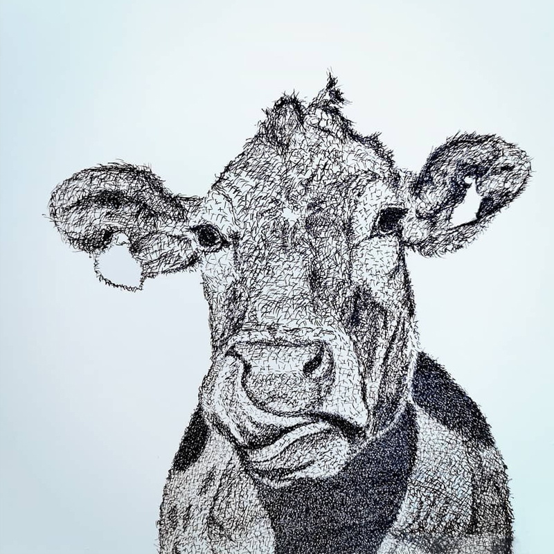 Kuh in Kreuzschraffur 30 x 30