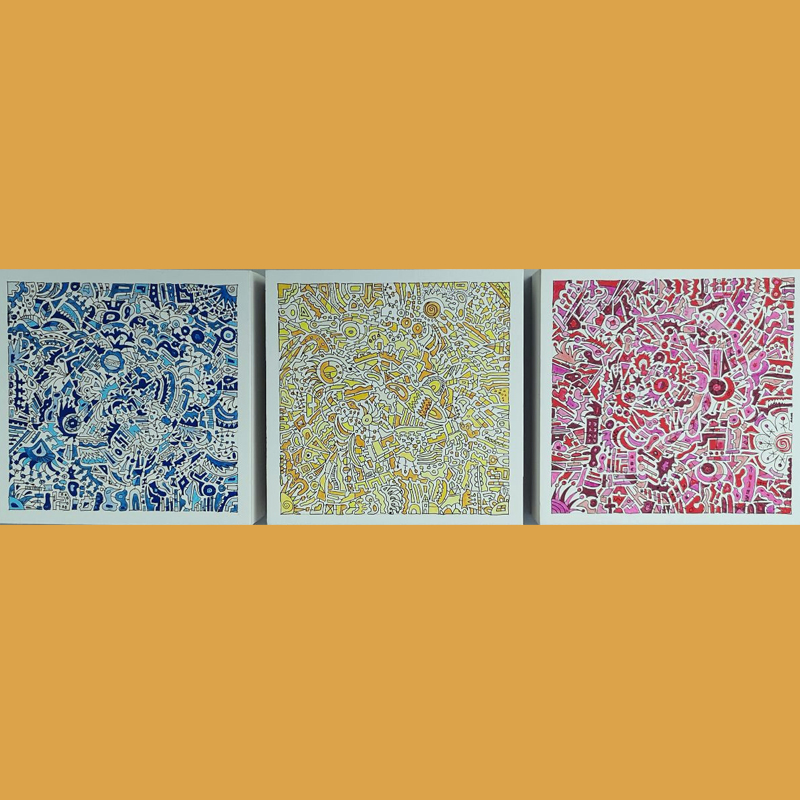Illustrationen auf Holz je 20 x 20