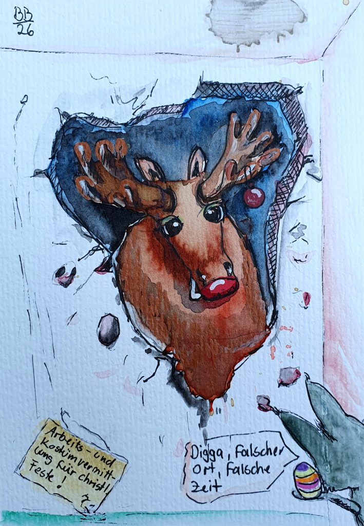 Der Dschinn erfüllt nicht alle Wünsche….. vorher darunter. Kaffee, Fineliner und Aquarellfarben auf Büttenpapier DIN A6 Weiterlesen