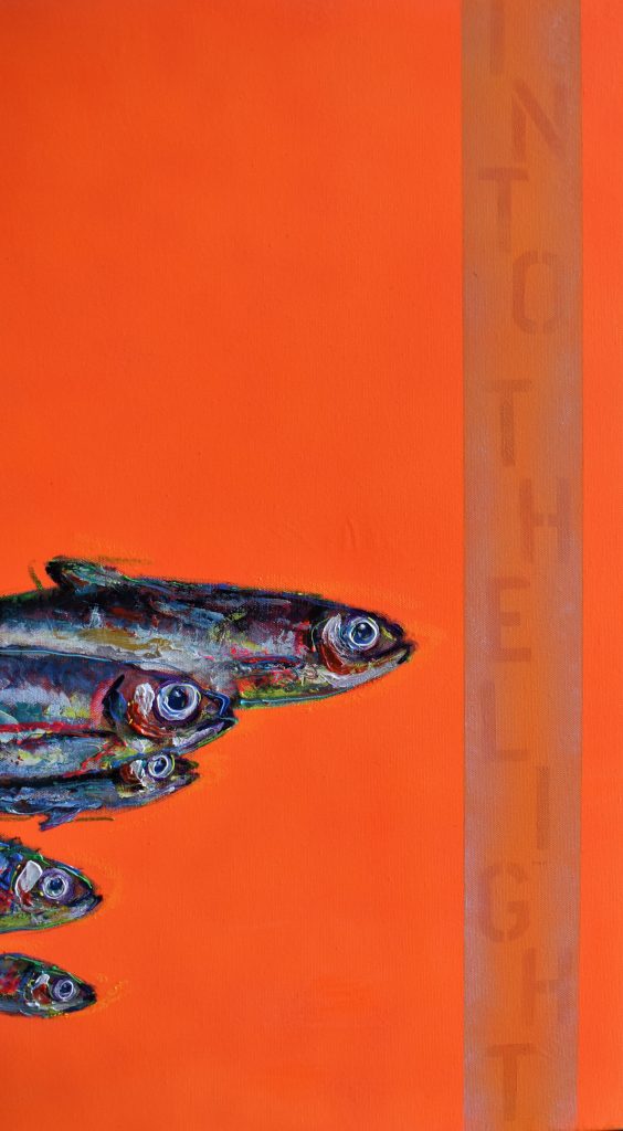 Into the light. 70x70cm Mischtechnik auf Leinwand.