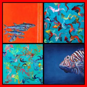 Wasser Wasser: unendliche Weiten ;-). Immer wieder taucht dieses Element in meinen Bildern auf. Anfänglich unbewusst und erst nachdem ich darauf aufmerksam gemacht wurde, habe ich erkannt, dass es mich malerisch immer wieder dahin zieht. All those fishies. In verschiedenen Techniken und Größen Into the light. 70x70cm Mischtechnik auf Leinwand. Feuerfisch in 30x40cm Öl auf Acryl. …von Leuchttürmen in wilder See… Kunst auf Glas und Holzrahmen. Je 20x20cm Der Zweifel. Acryl und Epoxidharz auf Holzbrett Der Oktopus. 80x100cm Öl auf Acryl. Let it snow…..Auf 20x20cm Holzmaltafel gemalt und darauf dann die Glasscheibe mit Figuren. Hai trifft Schlittschuläufer Aus meiner neuen Serie: Allein. Hier 60/80 Öl auf Acryl. Fische 2.0 Acryl 70/70 Szenen am Strand. Eine Collage mit H0-Püppchen von Noch und Faller auf 70 x 70 cm. Gemalt mit Acryl. Zum Thema der Ausstellung im Wasserturm Wesel. KiT. Storytelling auf Leinwand. Da droht Ungemach…. Malen auf Holz-Gessoboard 20 x 20cm …vom Tauchen im Wasser…ich sehe dich…ein Fingermalölbild in 60 x 80 cm 1 2 3 Weiter » Mehr Bilder laden